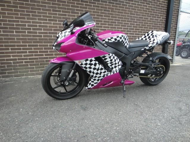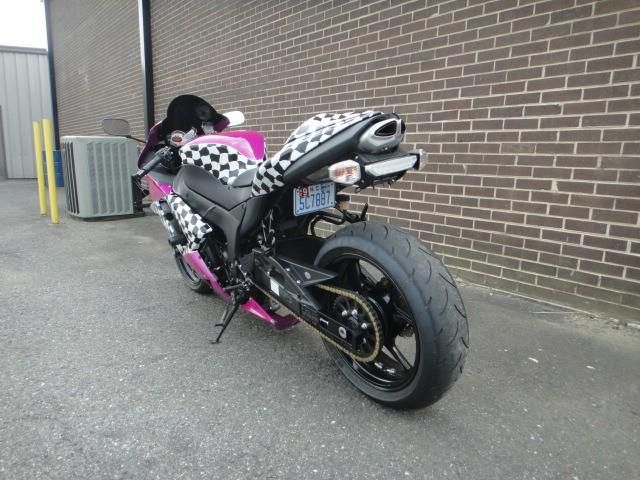 2007 KAWASAKI zx6, CUSTOM PINK AND CHECKERED FLAG PAINT JOB, LOWERED, EXTENDED WITH BOLT ONS, POWDER COATED PEGS/LEVERS, FRAME SLIDERS, AND A DOUBLE BUBBLE WIND SCREEN