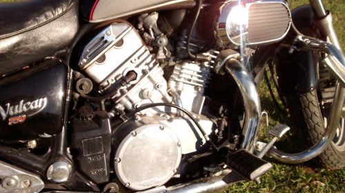 2005 KAWASAKI VULCAN 750 in excellent condition. This is the last year of production for this classic Vulcan 750 road bike. This is a one owner and I bought it new in Jan.2006. Has crash bars and highway pegs, K&N air filters, windshield, rear rack. Re-moveable locking fiberglass saddle bags. Original tool kit, owner's manual and locking chain. Runs and drives like a new bike. 13,336 miles on the clock. Clear TX title. Must sell since I can't ride anymore. Send e-mail for more info. or pictures. Buyer is responsible for all shipping charges or pick in Bullard, TX. 75757 I can help with delivery up to 200 miles for $1. per mile, one-way, payable at time of delivery. |