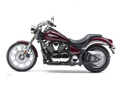 2011 KAWASAKI Vulcan 900 Custom, Call or email for our best prices!! The Epitome of CustomDrawing from both current and classic styling influences, the Vulcan. 900 Custom and Custom Special Edition cruisers are a distinctive mix of back-in-the-day style and up-to-date imagery an aggressive flat handlebar and forward footpegs place the rider in a stylish profile that enhances the overall visual appeal when rolling down Main Street. Stylish cast wheels, including a solid-look rear wheel, complete the classic V-twin look. And the 180-series rear tire, the largest in its class, accentuates its big bike style. But you wont pay big bike bucks to get this affordable middleweight. MSRP $8,549.00* DIMENSIONS Length 94.7 in. Height 44.1 in. Width 35.2 in. Weight Curb: 610.8 lbs. Wheelbase 64.8 in. Seat Height 27 in. ENGINE Engine 4-stroke, SOHC, 4-valve cylinder head, V-twin Displacement 903 cc (55.1 ci) Bore x Stroke 88 x 74.2 mm Torque 58.2 ft. lbs. @ 3,500 rpm Compression Ratio 9.5:1 Carburetion DFI with (2) 34 mm Keihin throttle bodies Fuel Capacity 5.3 gal. Ignition TCBI with electronic advance Cooling Liquid DRIVETRAIN Transmission 5-speed Final Drive Belt BRAKES/WHEELS/TIRES Brakes Front: 300 mm hydraulic discRear: 270 mm hydraulic disc Tires Front: 80/90 x 21Rear: 180/70 x 15 OPERATIONAL Frame Double cradle, high-tensile steel Suspension Front: 41 mm hydraulic telescopic fork 5.9 in. travelRear: Uni-Trak. swingarm, 7-way adjustable spring preload 4.1 in. travel Rake 330 Trail 7.2 in. OTHER Colors Metallic Dark Red