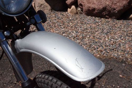 The outside of the tank has a very small ding, and a few minor scratches, as well as a little bit of black paint spots. The chrome heat shield on the exhaust pipe has minor damage, the gauge lenses are a little stained, and the gauge needles are a little discolored. All gauges work as they should, but the odometer reset does not work correctly. The seat is perfect, and the side tank is very nice. It is missing one mirror, and the existing mirror has some rust issues. The right hand grip is torn, but still operates correctly. The wheels are in excellent condition. There are a few minor scratches in various places, and a little bit of riding dirt, but overall this is a very, very clean, original condition classic enduro. The odometer shows 2,4xx miles, and I have the clear Colorado title in my name. In Colorado, vehicles older than 10 years of age are noted as mileage exempt on the title. The free and clear title is issued by the State of Colorado, and is in my name. This bike is ready to ride! As this bike is also for sale locally, the auction may be ended early. Shipping is the responsibility of the buyer, PLEASE check your shipping costs prior to bidding. This is a 40 year old, original enduro, no warranty is offered written or implied. A 500.00 deposit is required upon winning the auction, the balance to be paid by certified funds prior to the bike leaving my possession. I have been an ebay seller since 2004, and have sold numerous classic cars and bikes with no issues. I believe in honest descriptions, and clean transctions. I will not disclose the reserve, please just bid what you think it is worth to you, hopefully it will be yours! Please check out the pictures, ask questions, then bid with confidence! |