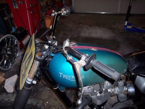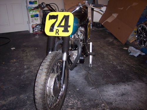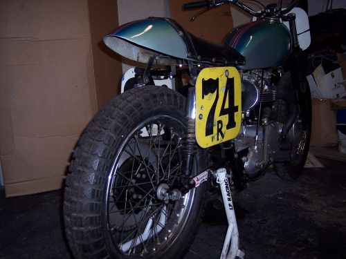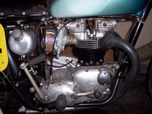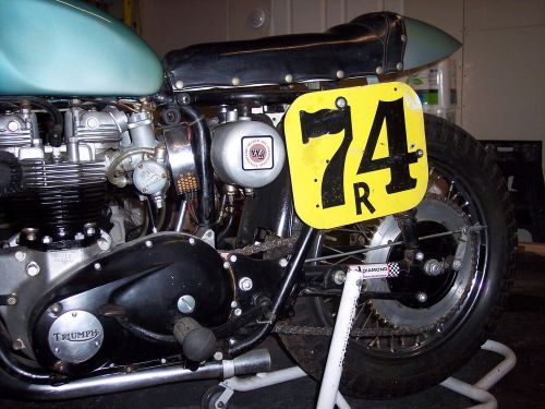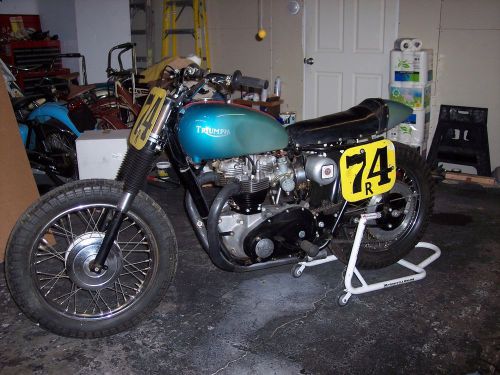 This Auction is for a rare SURVIVOR an AMAZINGLY original factory racing Triumph T120TT Special,NEVER used or registered for street use ALWAYS used as a racer period. Here is the description I got from Paul Buccola who owned it for over 30 years. The Triumph started out life in 1966 as a 650cc TT Special as manufactured by the Triumph factory for use by Triumph of Burbank for Tourist Trophy Class C racing in the US.The bike was book marked for Dusty Coppage to ride who with Eddie Mulder were Jack Hately's Burbank De Triumph team riders but, Dusty Coppage did not like the handling of the new, for 1966, frame geometry and choose to ride a 1965 Triumph model instead .The bike was sold after the 1966 season to Donnie Harris who used it primarily at Ascot Park for junior TT racing. After a quite successful 1967,with several top ten places the bike was then traded to Paul Buccola also for Ascot park junior TT racing.The motor was upgraded by Dusty Coppage (then in Simi Valley Ca) in 1968 and fitted with the alloy oil tank (the original tank goes with the bike) The bike was also used by Paul Buccola in Southern California local racing from 1968 through 1972 until, Moto Cross took over most of the dirt racing in Cal. the bike then sat from 1972 until 1983 and was then service by Bert's Cycles in Cottonwood Arizona where it was raced at local dirt tracks in the Verde Valley until Paul moved back to Southern Cal in 1988 where he used it at Willow Springs as a Road Racer for a couple of seasons and then retired it for good in 1990 where it had been in storage until turned over to his friend Erich Martin in May 2007. I got it last year from Erich Martin who took off all the road racing bits tires, clip on handlebars, etc) and reassembled it with its original parts as supplied by Paul Buccola back to its original dirt tracker style as you see it now,it still has its original Energy Transfer ignition (no battery) that still sparks and she runs great!.The T120TT stamped bikes 1965-1967 used for racing, almost ALL suffered from major engine blow ups or damaged frames etc. due to hard use, to find one with its factory original matching frame and engine number is almost unheard of, it's only "War Wound" at one time, it broke its drive chain and broke a piece of alloy about one and a half inch long by half an inch wide got broken off, an amazing neat break easily fixed by a good welder it doesn't show because it's hidden from view by the carburetor and air cleaner see pictures. Remember, this ISN"T a trailer queen or a road used bike that has been "restored" to look "PRETTY" with Chinese reproduction parts,electronic ignitions later type carburetors, restamped engine and frame numbers etc. This one not only has its original frame and motor but has its original wheels, brakes,handlebars ,levers kill switch, TT exhaust pipes monoblock carbs.I have its original oil tank in good shape but has been welded, they were prone to crack from vibration,the seat is a period Bates racing seat which was on the bike from day one NO ONE raced with the with the big ole loaf of bread looking stock seats they came with! SO here is an opportunity to obtain a piece of history raced in its lifetime by only two people Donnie Harris and Paul Buccola. Triumph T120TT and Harley-Davidson XR750 were the Only way to go ridden by the very top riders in the USA in the mid-1960's. I used to own British Motorbikes in No Hollywood for fifteen years and was a factory Triumph dealer for a short while before the old Triumph Co. folded in the early 1980's I know the real thing when I see it.Viewing available anytime.The bike is in No Hollywood just call Frank 818 645 9029 winning bidder responsible for shipping and transportation, local pick up is fine, good luck with your bidding please don't bid if you don't have the money!! thank you.