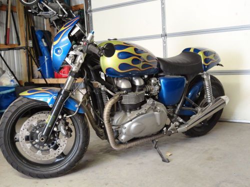 865cc carbureted engine. Front suspension and brakes are off a Daytona 600. As are the front and rear wheels. SS braided brake hoses front and rear Tires have around 2,000 miles on them. They are Pirelli Angel GTs 5/32nds left 180 rear tire conversion Carbs are rejetted, airbox removed, custom breather, AIR removed and plugged. British Customs Predator mufflers, pipes wrapped Barnett clutch Carbon fiber front fender and headlight fairing. There is much more, but those are the basics. Please email me with any questions. All work has been done by me, except the paint. Lots of extra and stock parts included in sale. Serious Inquires Only, not interested in any type of trade Currently bike is not inspected or registered, due to me not riding it. I can get it up to date if serious buyer requires. I can deliver locally in 19607 area if needed. Have trailer and tow vehicle. Will not ship! NO out of state buyers with "pickup agents". |