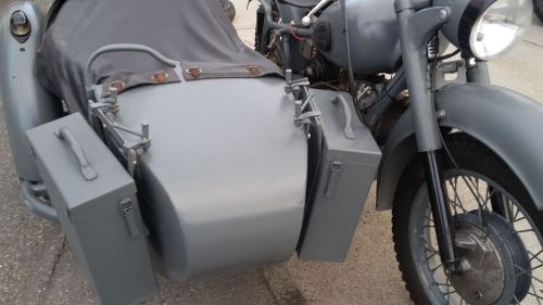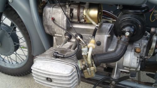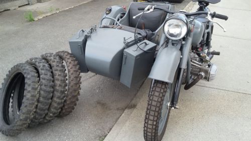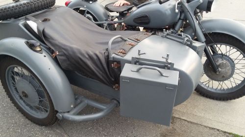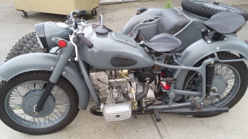 Original Soviet build motorcycle Dniepr MT9 with side passenger cart (sidecar). Restored to original condition with grey (feldgrau) paint and original Soviet era parts, just the way it was leaving production line in 1973. Originaly1938 BMW used by Wehrmacht during WWII. This is a Russian version of this motorcycle. A work horse of Soviet Army since World War II till collapse of Soviet Union. 2 cylinder 4 stroke 750cc engine in boxer configuration, ( 23KW or 31HP) shaft drive 4 speed transmission with reverse and 12 volt battery for lights and manual (KICK) start. Ammo boxes with original mounting brackets included. Total weight 350kg or 770lbs. Currently in Vancouver Canada. Inspected and ready to take you for a ride. Engine working perfectly with nice low suppressed sound, different than Harley.