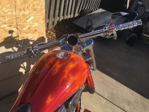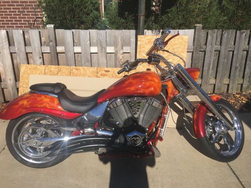 This one is the deal of he summer!!! 2006 Victory Vegas Jackpot, Arlen Ness custom show quality bike was built for a promo company, V And H black radius exhaust, many extras custom 21 savage rim, custom fender, custom dynamics wrap turn signals, Arlen Ness grips, levers, bars, chrome covers, Chrome forks, chrome swing arm, raked triple tree, 250vrear tire. Dakota digital gauge. Pro Air intake. 35k invested