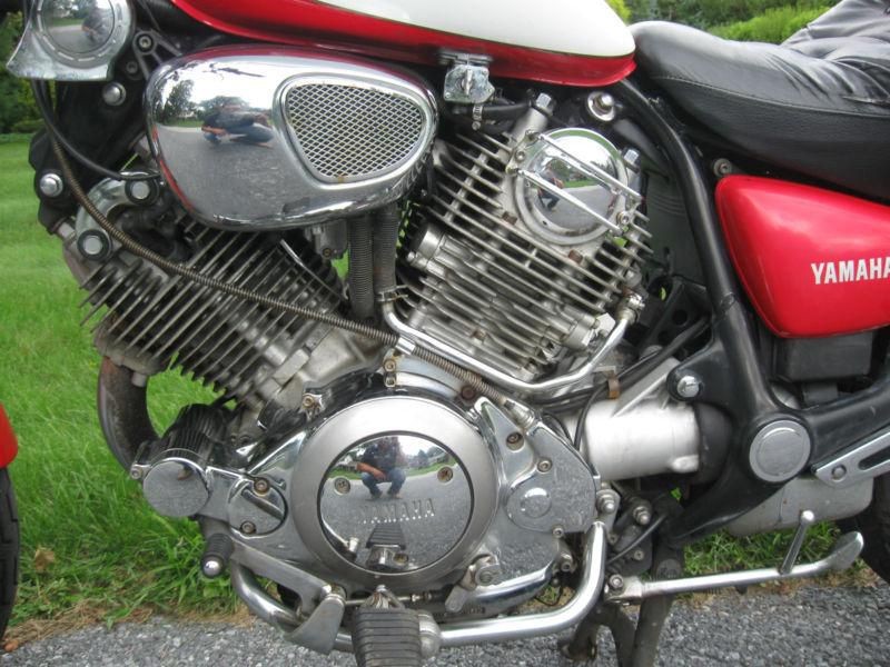 Nice Virago 750 in good condition that runs great, just cleaned carbs, new NGK plugs and oil change, replaced fuel line...She's running like a top! These are great bikes that run forever and have a huge following so if you ever sell you will get your money back or even make a few dollaros! Great handling and loads of torque along with great style are the reason these bikes are so popular. Bike is running great, shifts correct and has smooth power, no leaks, no strange engine noise. Cosmetically not perfect but still looks respectable...chrome is nice and shines up good with little corrosion...Paint is good, fenders have a little fade, tank looks good, no dents or damage, paint looks good....seat has a few repairs (see photos)....brakes are good, tires have tread but are starting to show age....a few scratches on the exhaust and ball is broken on front brakes handle...everything functions as it should and the bike is running top notch! ...$500 down at auction's end with balance due within seven days...I will accept a check of any kind but it must clear in my account before I release possession of the bike and title...Good Luck!