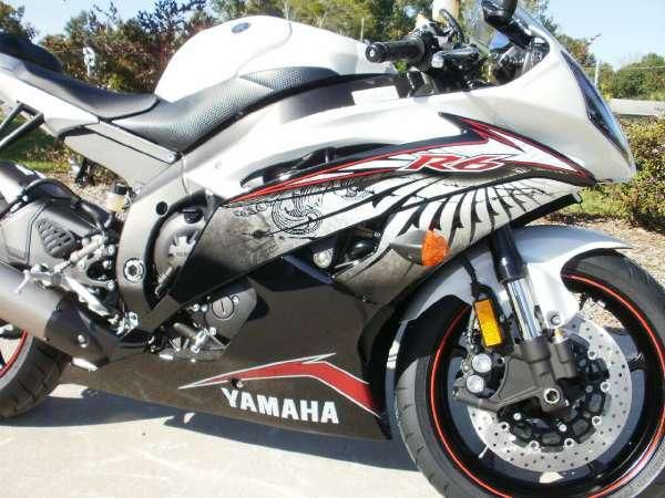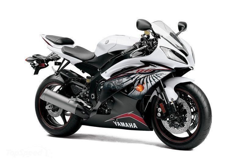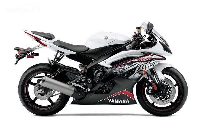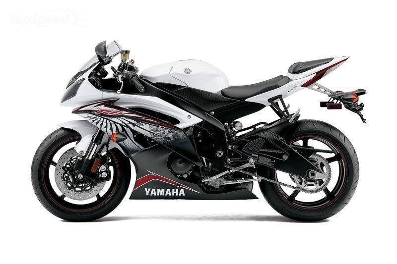 2012 Yamaha YZF-R6, lightweight 67mm x 42.5mm, 599cc DOHC 16-valve, liquid-cooled titanium-valved four-cylinder has a compression ratio of 13.1:1, for great response. Domed pistons with valve cutouts produce a compact combustion chamber.Fuel injection mapping for the YCC-TYamaha Chip Controlled Throttle dual-injector system complements the high compression ratio for great throttle response and reduced engine braking.YCC-IYamaha Chip Controlled Intake electronically varies intake tract length for a broader powerband.A magnesium subframe removes weight from the rear of the motorcycle for increased mass centralization.YCC-T uses a powerful ECU and multiple sensors to provide perfect, smooth engine response and optimal power whenever the throttle is twisted under all conditions.Twin-injector fuel injection: shower-type injectors above each intake funnel help achieve optimum fuel atomization at high rpm.Slipper-type back torque-limiting clutch greatly facilitates braking and downshifting from high speed. Close-ratio six-speed transmission delivers seamless power and maximum acceleration.GP-style titanium muffler contributes to mass centralization and contains EXUP for a broad powerband, and 02 sensor for spot-on injection and emissions compliance.Linerless, direct-plated ceramic-composite cylinder bores mean greater heat dissipation for consistent power delivery and reduced friction.Cool magnesium valve and engine covers are light and stylish.Direct-ignition coils, dual-electrode spark plugs and high-output magneto deliver extremely accurate, reliable firing.Chassis and Suspension Deltabox aluminum frame incorporates GP thinking in terms of engine positioning and rigidity for the ultimate in 600-class handling.The lightweight swingarm pivots high in the frame, for increased anti-squat effect and mid-corner stability. TZ-type chain adjusters ease rear tire changes.Four-way adjustable (preload, high-speed compression, low-speed compression and rebound damping) inverted fork with 41mm tubes increases freedom in setting up for street or track use soak up the bumps and resist bottoming when braking.Four-way adjustable (preload, high-speed compression, low-speed compression and rebound damping) piggyback rear shock delivers exceptional rear wheel tracking and stability.Dual 310mm front disc brakes use forged one-piece radial-mount calipers and radial-pump front master cylinder with adjustable lever for astounding braking power and feel.The casting technique for the five-spoke 17-inch wheels makes the rims light and strong, not to mention wickedly cool-looking.Removable rear shock spacer and adjustable fork ride height allows the rider to tailor the ride position for the best fit and comfort.