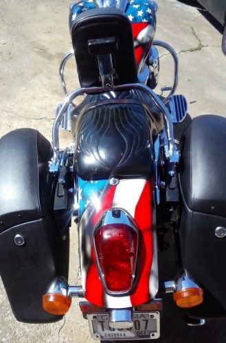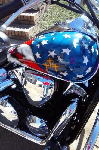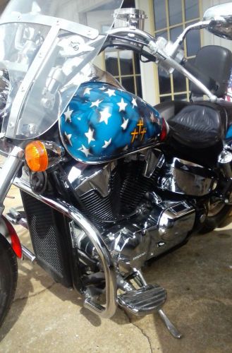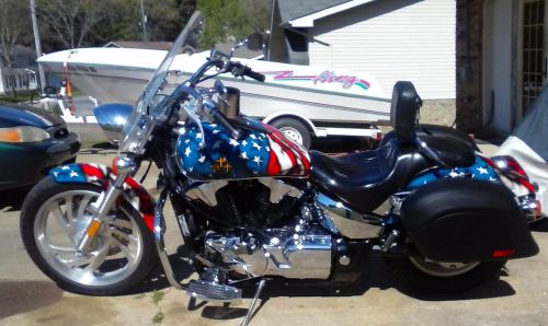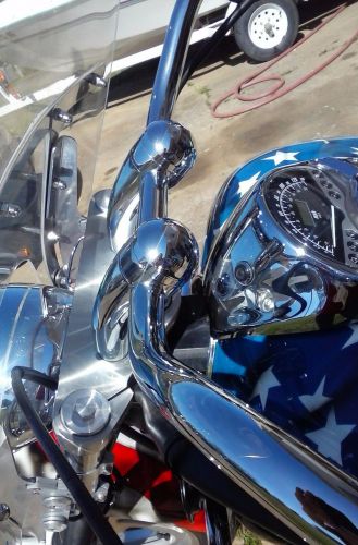 2005 Honda VTX 1300 C Full Custom American Flag Paint Job Viking Leather wrapped Hard Saddle Bags Vance Hines Long shot Pipes, just repacked muffler and new gasket between head and pipes. VTX S Handlebars Show Chrome 4" Handlebar Risers Corbin Seat Reversible Custom Backrest Chrome all over About 12,500 Miles but riding daily New Tires New Oil Change along with Final Drive Radiator flushed and fluids changed I do have this for sale locally so it may be removed early. |