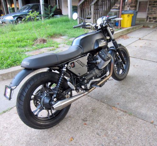 I am selling my baby. The time has come, but I don't think it has fully sunken in yet. Why am I selling? Well, we're expecting our first baby soon, and not only am I reevaluating my risk-taking currently, but I also am wondering when I will even have the time to ride with a little one coming. Therefore, I've come to the conclusion that selling it is the best thing, despite all my reservations not to do so, since I've put so much time, money, effort and dedication into making this bike so perfect. Now, onto the bike. . . It's a 2013 Moto Guzzi V7 Stone in Matte black. Excellent condition. Perfect working condition. This is the first year with the upgraded internals and more power than the previous V7s. However, this is not just the regular, run-of-the-mill Moto Guzzi V7. This particular bike has been GT-Rx tuned by Todd Eagan of Guzzitech.com. If you don't know who that is, or what Guzzitech.com is, I suggest you visit the website. Essentially, Todd Eagan is the Moto Guzzi guru. He is a former Pro racer and current stunt rider and Guzzitech.com owner, and a fueling expert. He is basically famous in the Moto Guzzi world. My bike has been given the full treatment, from fueling, to suspension, to exhaust system. Todd is famous for his fueling/remapping, as he has been doing it for almost 20 years. The bike has his GT-Rx Brushed Stainless 2:2 Full Exhaust System ($1350) installed, plus his remapped ECU in conjunction to provide amazing throttle response and increased power. The V7 stock is completely choked up by the EPA and has bad throttle response, specifically low speed throttle, where the bike used to jump at low speed and you would have to hold the clutch in just to move at parking lot speeds. With Todd's new map that he spent countless hours tweaking to perfection, the bike is an absolute dream to ride, with low speed throttling being 10x better than stock, and the bike pulls uniformly throughout the rev range, and it sings over 5000 RPM, whereas before it felt like it couldn't go past 3000 rpm. Todd perfectly tuned the ECU to compensate for the increased header diameter and open mufflers. There are no baffles but it is not annoyingly loud. . .it has that beautiful vintage sound to it. But let me tell you, it sounds sooooo much better than the stock exhaust system. It's night and day, no question. Absolutely amazing sound coming out of the exhaust. No pop on decel either due to the awesome mapping. Not only that, the custom exhaust system sheds around 20lbs or more off the stock setup. I have a BMC air filter installed as well, which was considered in the ECU map as well. This isn't just someone sticking their head in the sand with a new exhaust system and different air filter, etc. and not changing the fueling - that's for amateurs and people who don't know what they're doing. This was all specifically tailored to the remap, and it's awesome, period. A full suspension system was installed as well, front and rear. No expense was spared here really. It's Matris of Italy in the front and the back. They make some of the best suspension components in the world. The front is a drop in emulator kit that allows to adjust for preload and completely changed the cheap feeling stock front suspension. Now, it feels planted and absorbs bumps beautifully, and you can adjust the preload which is not available in the stock setup. The rear is Matris twin shocks M40D. They were $1100 for the pair. They are jewel-like in build quality and look. They could hang on the wall of your house. Make no mistake, they perform just as good as they look. Amazing, period. They allow preload, rebound, and length adjustment. They were custom sprung as well. Leaps and bounds over the stock suspension, no question. The stock V7 just doesn't even compare in terms of handling and ride-ability. The forks were brought up about 15mm as well to provide for more accurate turning and handling. It's awesome. I replaced most of the plastic on the bike as well. The front and rear stock fenders were plastic. Those were replaced with lightweight aluminum fenders by MAS Engineering of Italy, and they were powder coated matte black to match the tank - perfect match. The plastic timing cover was also replaced with an aluminum one by Stucchi that was also powder coated matte black, and stainless steel bolts were used to replace the aluminum bolts. The plastic side covers were replaced by Aluminum matte black V7 side covers that come with the V7 Racer model. The bulky mirrors were taken off and I installed a Rizoma 'One' mirror on the left side only, as I liked the classic look of one mirror only. The right side mirror mount was replaced with a brake pump holder clip that eliminated the mirror mount hole for a clean look. I still have the stock mirrors, and all the stock parts to revert back if desired. The plastic/bulky front turn signals were replaced with Rizoma 'club' turn signals, which are just absolutely sick looking. They're tiny bullet shaped, billet matte black LED turn signals. Gorgeous. If you know Rizoma, then you know how much I spent just on those turn signals. The rear turn signals and brake and license plate holder was all replaced. It was extremely bulky and just not aesthetically pleasing. I installed an LED license plate by Radiantz with turn signals and brake lights in one. It is super clean looking and works perfectly and is very bright. They are top quality and not the cheap kind at all. $130 for the LED plate surround. I fixed all the annoying things and teething problems of the V7 that you don't have to go through. I spent a lot of time, money and labor doing all of this. I took out the half plastic, half metal fuel filter and replaced it with an all-metal Mahle KL 145 fuel filter so that the risk of the plastic bulging and bursting would not happen. The Voltage regulator on these V7s are known to over charge and it was documented over at the guzzitech.com forum from a large amount of people having over-charging p