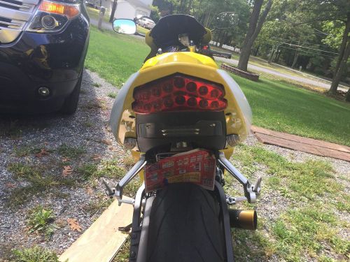 Bike is ready to ride. Battery and front tire new at beginning is summer has a jet kit with new Coffman exhaust come with Corbin front seat and 2 yellow rear seat cowls and 1 white seat cowl also have front and rear factory seats had rims painted yellow plugs and coils were also replaced first of this summer very fast bike looking to upgrade to Harley bike has just under 11000 miles clean title in hand also license plate eliminator kit with lights new this year also
